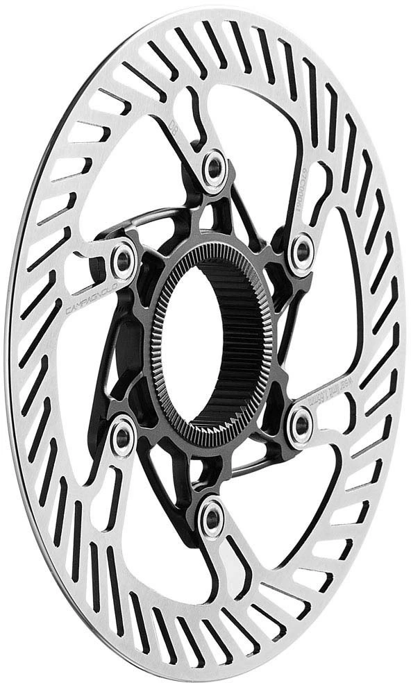 Diese langlebige zweiteilige Scheibenbremse ist mit AFS- und Center Lock-Naben kompatibel und für alle Arten von Belagmischungen geeignet. Seine robuste Spider aus Aluminium wurde einem CNC-Bearbeitungsprozess unterzogen, bei dem jedes unnötige Material entfernt wird, um ein hervorragendes Verhältnis von Festigkeit zu Gewicht zu erzielen. Campagnolo hat diese Version auch mit einer Stahlbremsfläche ausgestattet, die eine Überhitzung des Bremssystems auch bei steilsten Abfahrten oder engen Kurven verhindert. Entwickelt, um unglaublich aerodynamisch zu sein, verhindern seine abgerundeten Kanten an der Scheibe Verletzungen oder Schnitte, wenn Sie mit der Scheibenkante in Berührung kommen. Dadurch haben Sie mehr Sicherheit beim Bremsen und profitieren von einem reibungslosen, gleichmäßigen und kraftvollen Betrieb, wohin Ihre Fahrt Sie auch führt.