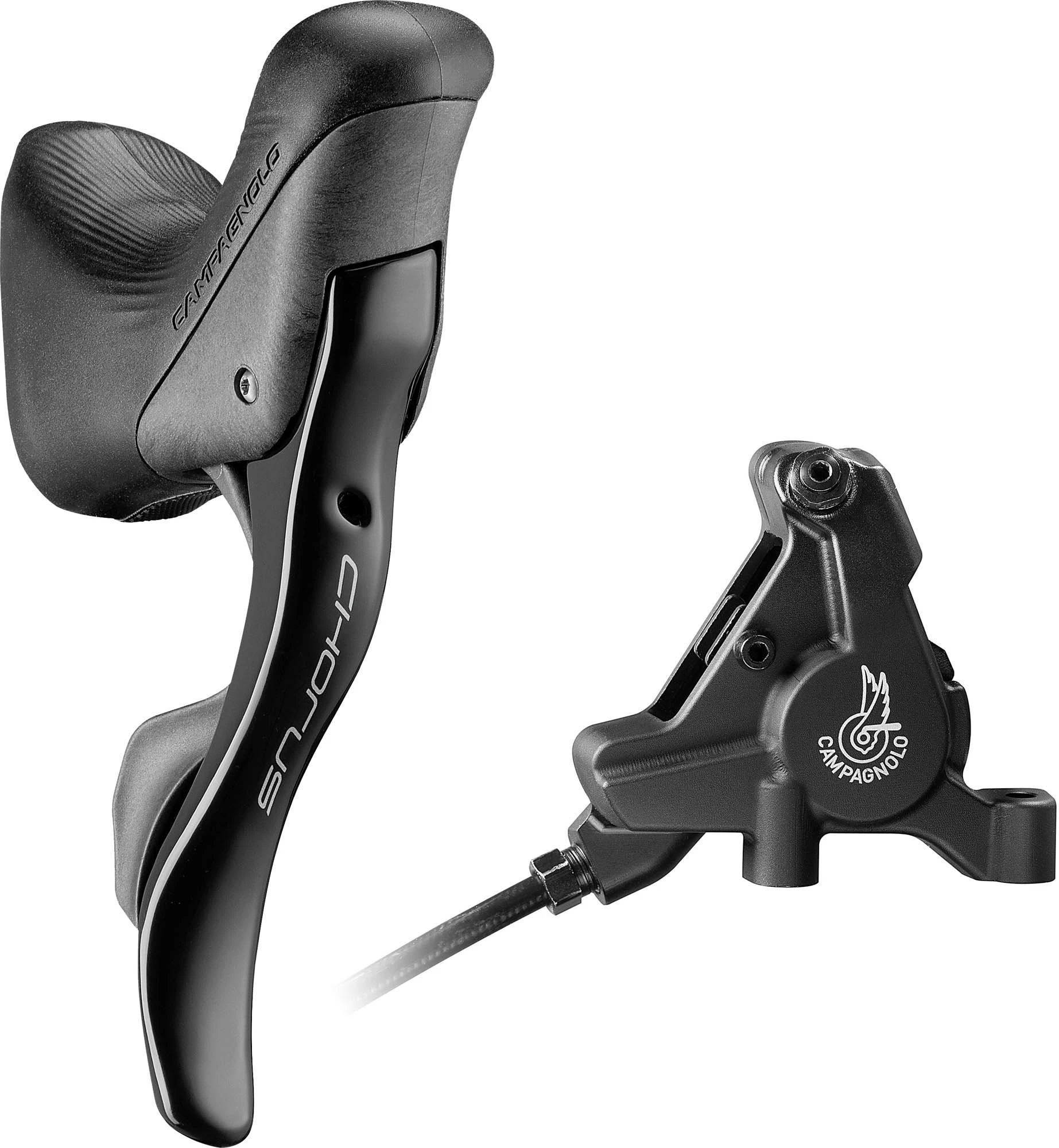 12x Chorus Hydraulic Ergo levers and disc calipers for use with the disc brake groupset. These are now being supplied pre-filled with hydraulic fluid.