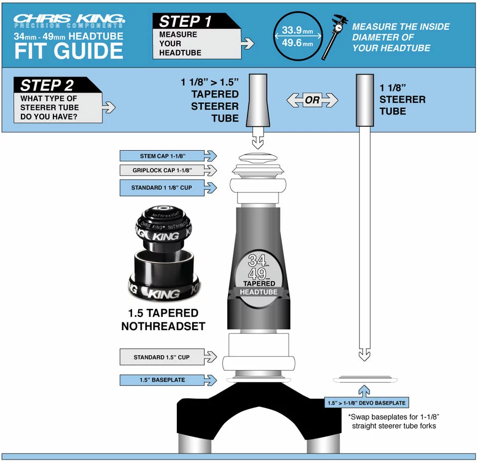 Das bausteinförmige Design des Steuersatzes wurde von Chris King bereits 1976 entwickelt. Es diente als Ausgangspunkt für den Schritt hinüber zu gewindelosen Steuersätzen – mitunter wohl eine der legendärsten Ideen im Radsportbereich. Das Chris King No ThreadSet™ ist ganz einfach und kennt keine Grenzen. Er kann an Rennrädern sowie auch an Mountainbikes verwendet werden. Verwendet wurde er bereits bei MTB Weltmeisterschaften in Endurance oder Gravity Disziplinen und hat auch schon bei den ganz großen Straßen-Touren die Ziellinie überquert.