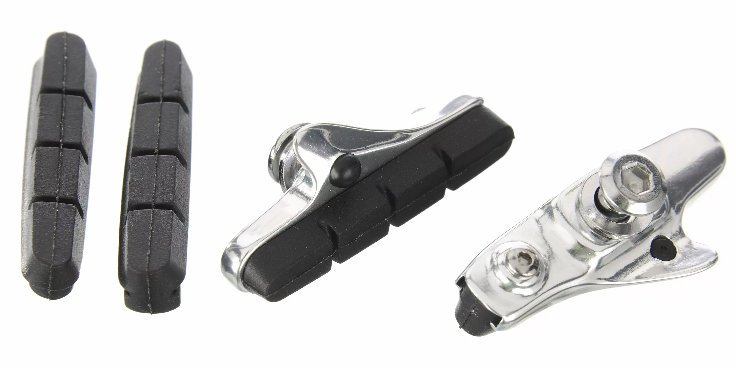 These Clarks 55mm brake shoes come with rubber pads installed and are suitable for use with aluminium and all metallic type rims.