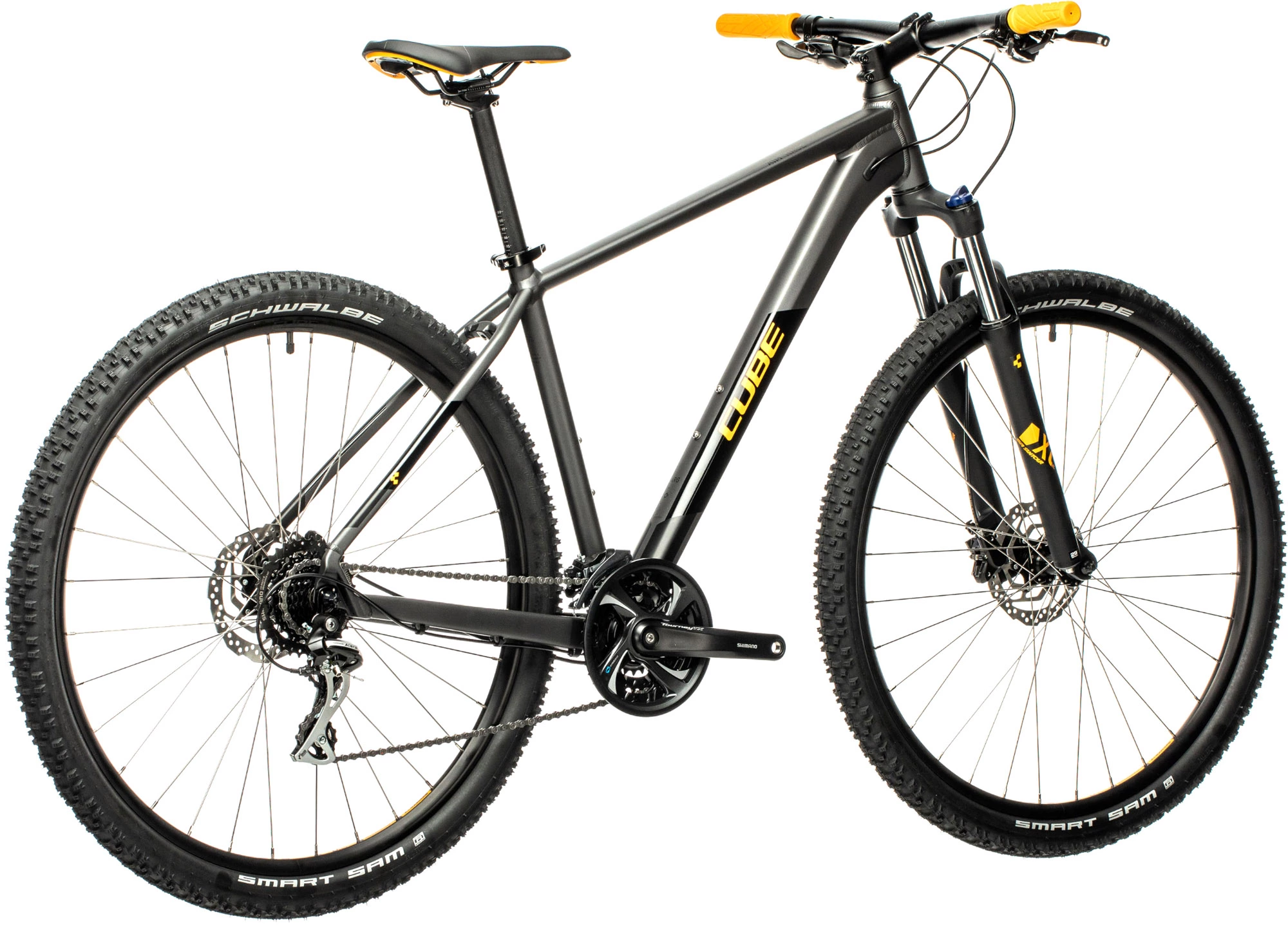 Ausgestattet mit einer präzisen und leistungsstarken Bremsleistung der hydraulischen Scheibenbremsen von Shimano sorgt dieses agile und einfach zu steuernde Hardtail dafür, dass Sie Ihren Schwung bei Bedarf verlangsamen können. Mit einem sanft schaltenden 3×8-Gang-Shimano-Antrieb kann jeder Aufstieg erobert werden, und der ganztägige Fahrkomfort und die Zufriedenheit sind garantiert. Die mit Schwalbe Smart Sam-Reifen ausgestatteten Cube ZX20-Felgen sorgen für sicheres Rollen und außergewöhnlichen Grip bei allen Wetterbedingungen.