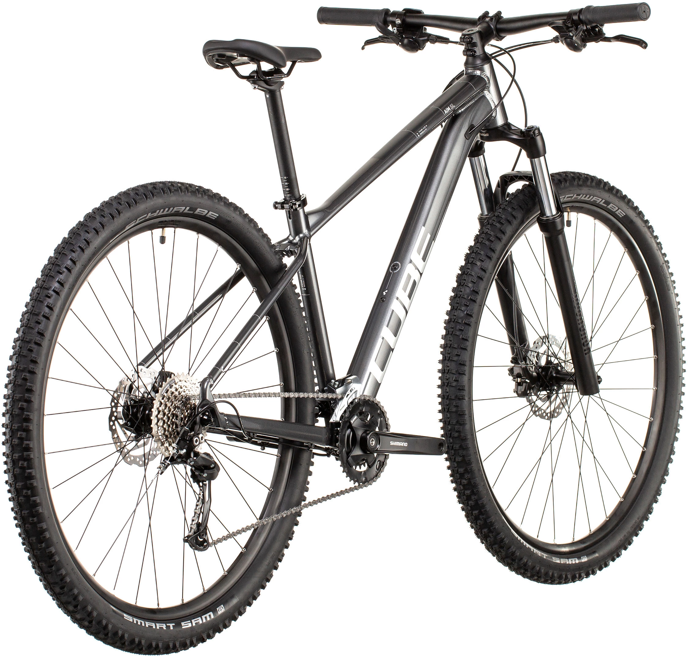 Rolling aboard a RockShox Judy suspension fork, Cube ZX20 rims and Schwalbe Smart Sam tyres, the Cube Aim SL Hardtail Bike soars over rock gardens, trial chatter and finds grip in the most treacherous terrain. And, this modern ride features a Cube finishing kit for the greatest handling, reliability and style at this excellent price point.