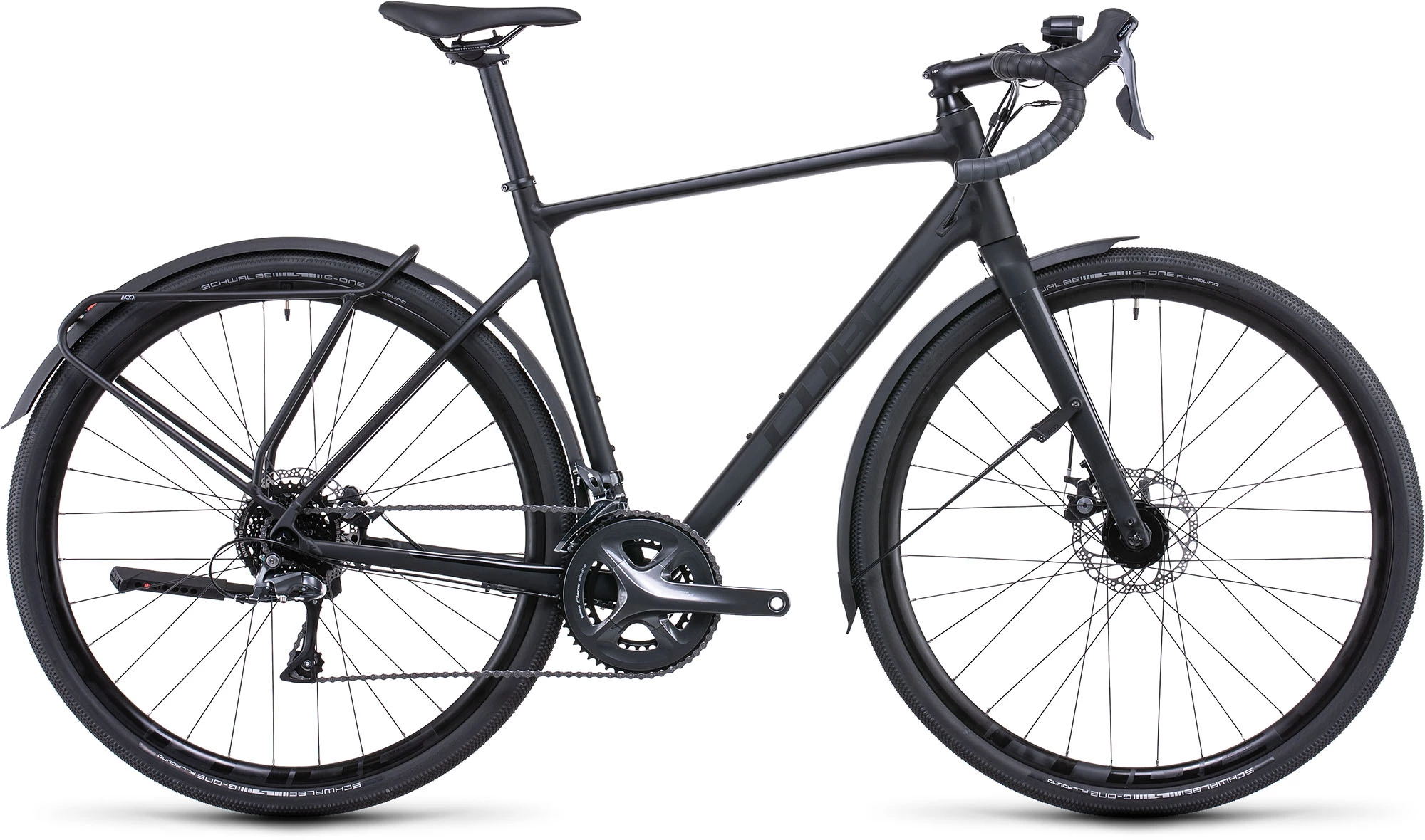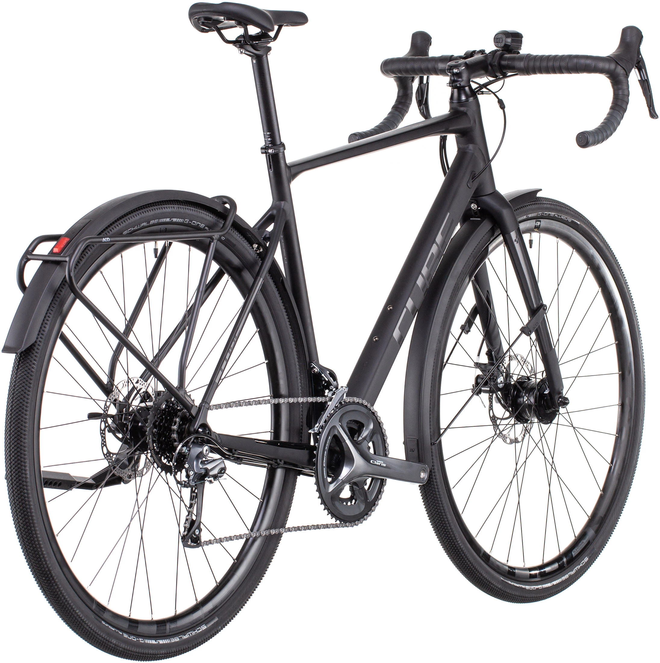 Ideal for bike packing, touring, trekking and commuting, this bike is engineered with a Cube Superlite Aluminium frame, carbon forks, a Shimano Claris 2×8-Speed groupset and Tektro mechanical disc brakes. And it rolls fast and stable upon Shimano hubs and Cube GR 2.3 Disc rims wrapped in high-grip Schwalbe G-One Allround tyres.