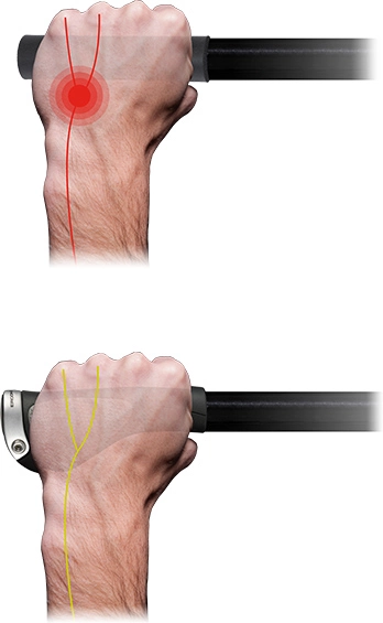 Eine besonders innovative Lösung für das leidige Problem von tauben Fingern, schmerzenden Hände und Unterarmen. Das kennt jeder Radfahrer. Es wird dabei einfach zu viel Druck auf die empfindliche Handinnenfläche angewendet und oft ist auch die Hand an sich schon schlecht positioniert. Die Ergon Griffe sorgen für 100 % Kontaktfläche zwischen Hand und Griff durch ihre anatomisch angepasste Form. Und da so weniger Druck entsteht, vor allem im Bereich des Ellennervs, werden Ihre Hände somit nicht taub. Außerdem wird auch ein Überstrapazieren des Mittelarmnervs verhindert, der oft für das Karpaltunnelsyndrom sowie schmerzende Handgelenke verantwortlich ist.