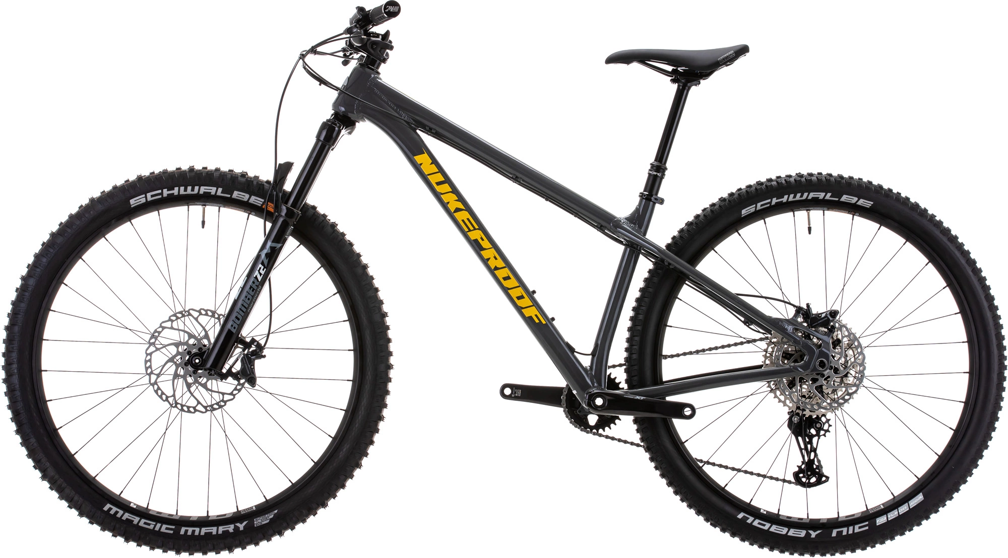 Das Scout 290 Comp verfügt über einen agilen, langlebigen und leichten Aluminiumrahmen und 29 Zoll (29er) Laufräder. Nukeproof hat dieses Comp-Modell mit Marzocchi Bomber Z2-Federgabeln mit 140 mm Federweg ausgestattet, die Unebenheiten und Stöße aus dem Gelände auffangen und gleichzeitig für eine hervorragende Vorderradtraktion sorgen. Es ist außerdem mit einer Shimano Deore 12-fach-Gruppe mit einer breitbandigen hydraulischen 10-51T-Kassette und hydraulischen Scheibenbremsen ausgestattet, die Ihnen eine reibungslose und schnelle Schaltleistung und eine außergewöhnliche Allwetter-Bremskraft bieten. Es ist außerdem mit Tubeless Ready Nukeproof Neutron-Laufrädern ausgestattet, die mit Schwalbe Magic Mary- und Nobby Nic-Reifen aus Addix-Mischung umwickelt sind.